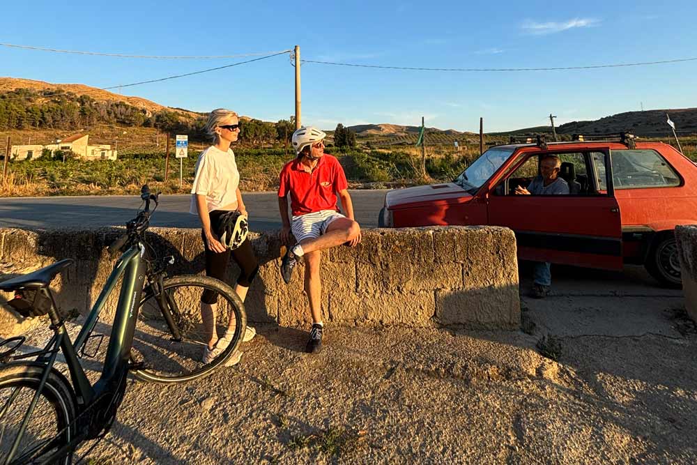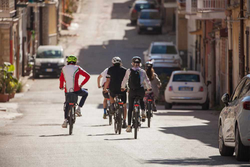Qui si pedala in silenzio, circondati da ulivi e mandorli antichi, con una vista che cambia a ogni curva.